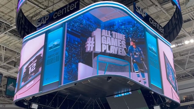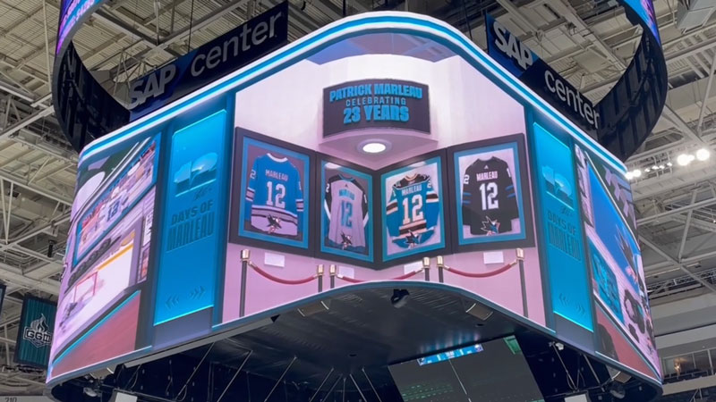 Lifelong fans of the San Jose Sharks, truly admire Patrick Marleau’s dedication, skill and passion. He is a true legend of the game and a hero to many. When I had the opportunity to create a 3D scene to honor his remarkable career, I felt honored and inspired. I wanted to capture his journey as a Shark through his different jerseys, each representing a milestone in his legacy. I used Cinema 4D and Redshift render to create this scene, which was shown to a roaring crowd of 17,562 fans who came to celebrate their idol.