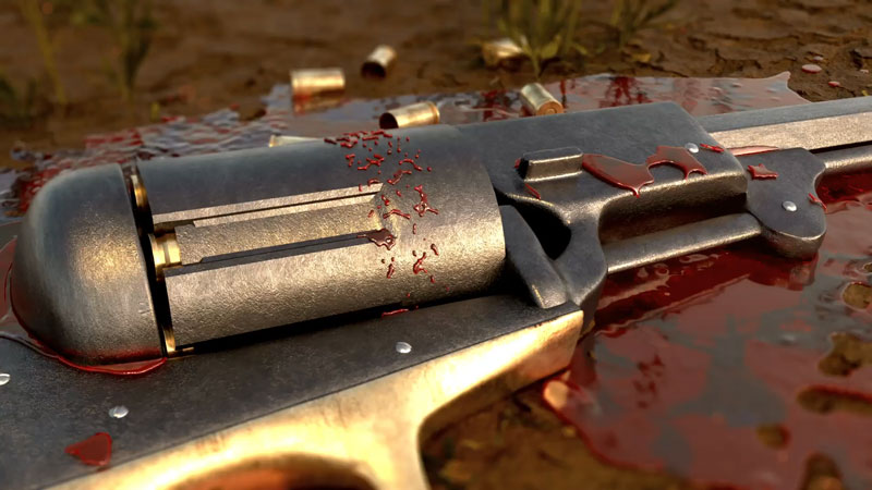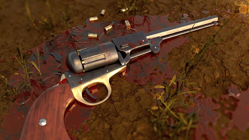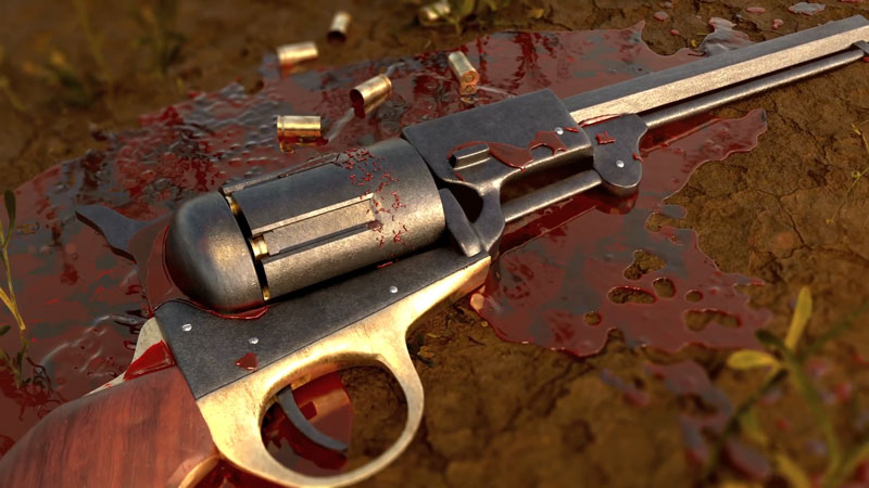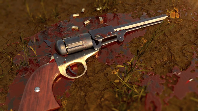 DJANGO! What a blast from the past! I loved the title sequence so much that I recreated one of its coolest scenes. I made a 3D pistol that looks like it came straight out of the movie and added a gush of blood for extra impact. This makes the composition pop and brings out the mood of the awesome spaghetti western.